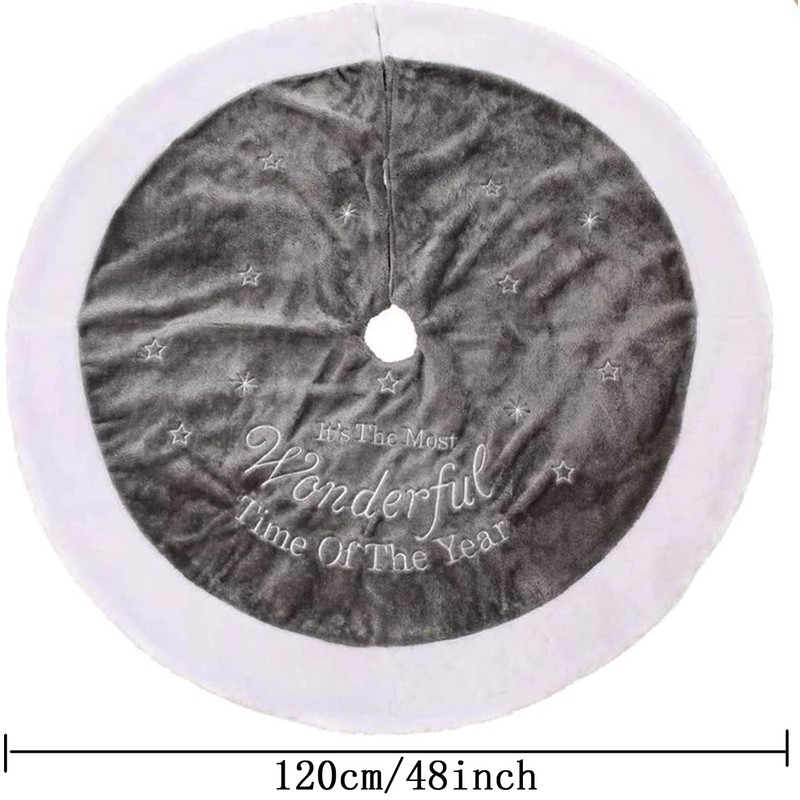 Ywlake Christmas Tree Skirt Large Luxury Faux Fur White Grey Tree Skirt with Snowflake Double Layers Soft Tree Skirt for Christmas Holiday Decorations 120 cm