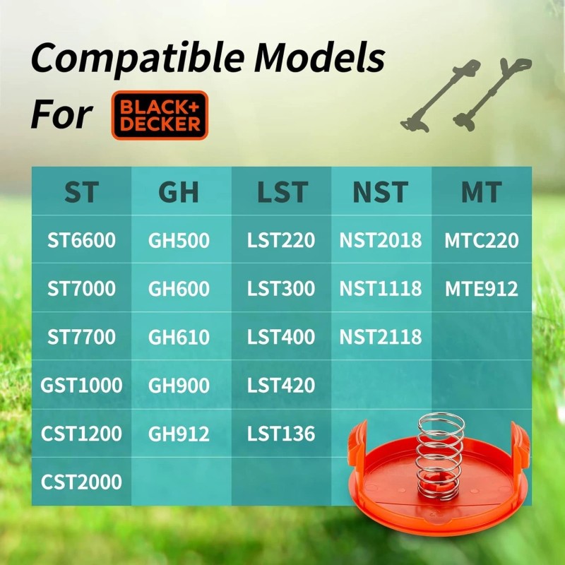 • Included: 4 pack replacement spool cap covers and 4 pack replacement spring for BLACK+DECKER String Trimmers