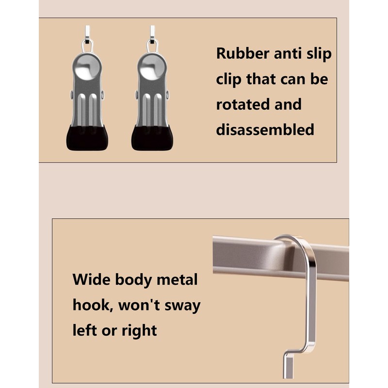 - 【 Widening metal hooks】 The widened metal hook not only enhances the load-bearing capacity of pant hangers with clips, but also prevents it from shaking during use