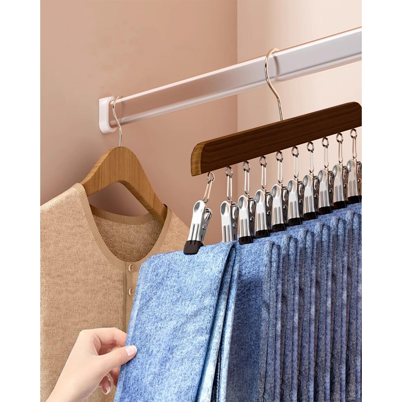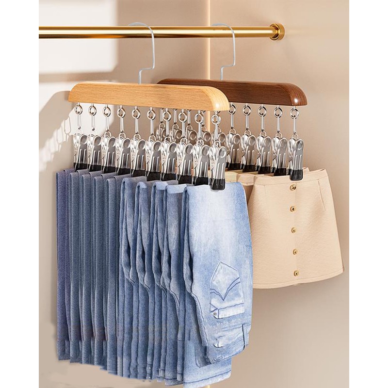 - 【 Anti-Slip & Traceless Clips 】 Equipped with stainless steel clips featuring rubber-coated edges, these wood pants hangers provide a strong grip without leaving marks on your clothes. We have specially adjusted the tightness of the clips for easier use, ensuring your garments stay securely in place.