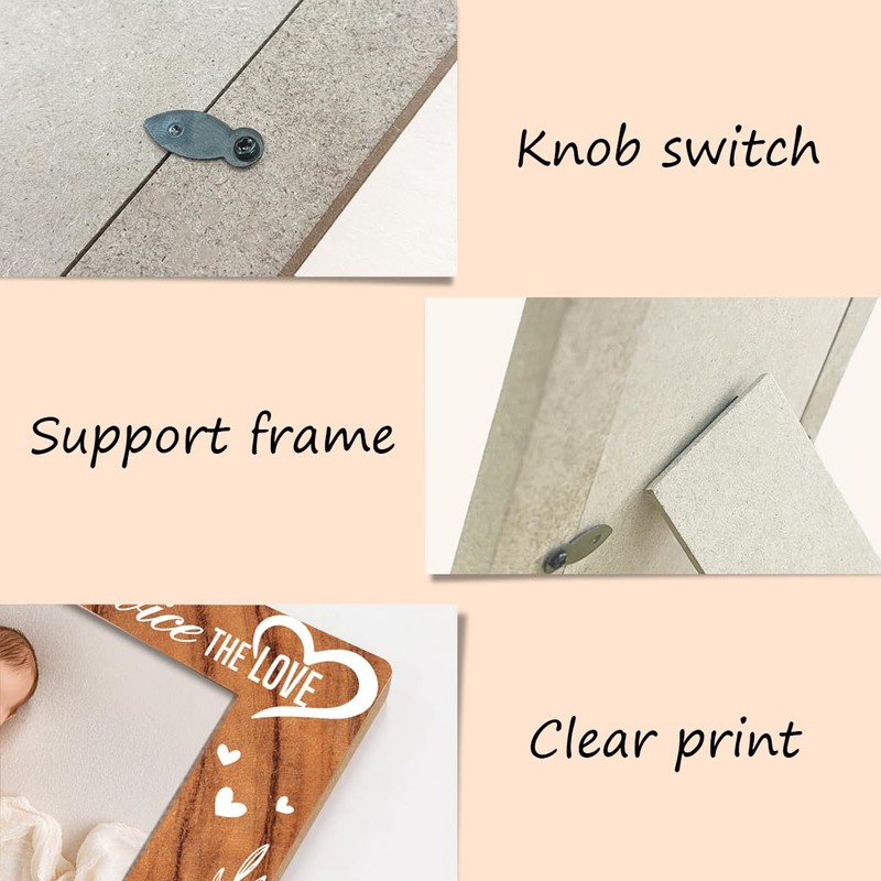 - Desktop display: The frame comes with a stand, suitable for placing on a bedside table, desk or desk, so that you can enjoy the precious memories in the photos at any time.
