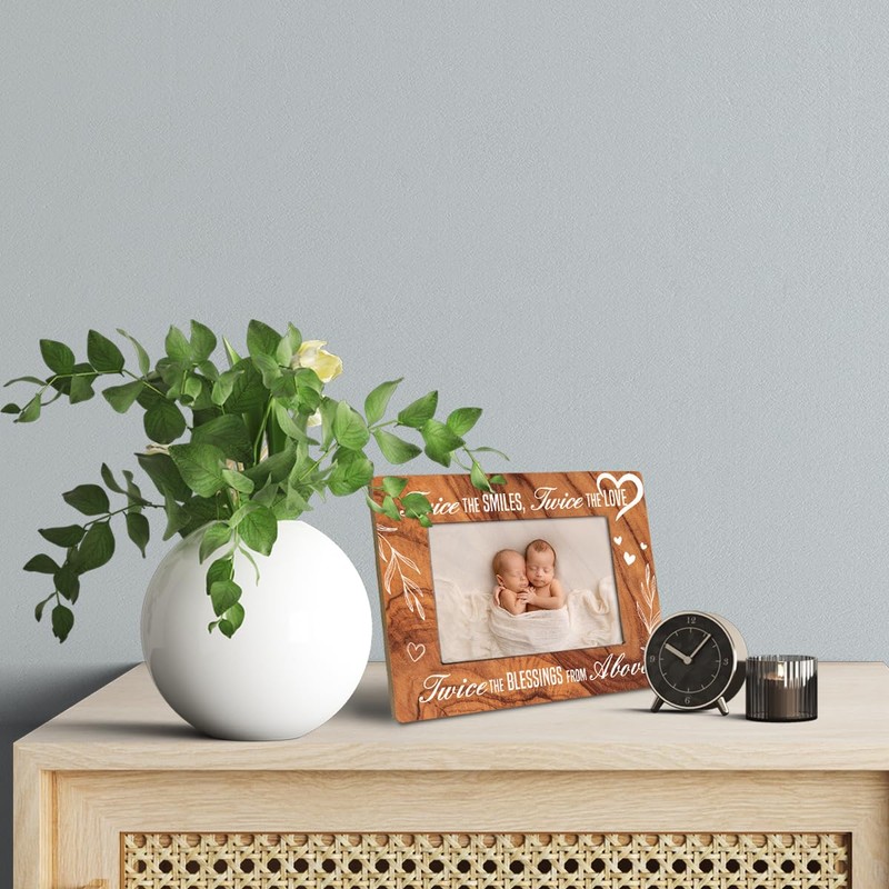 Yxadu Twin Baby Gifts, Twins photo frame, Twins gifts for babies, wice the Smiles, Twice the Love, Wood Picture Frame, Table Top Display, Holds 4 x 6 Inch Photo-Rustic Nature Wood Texture