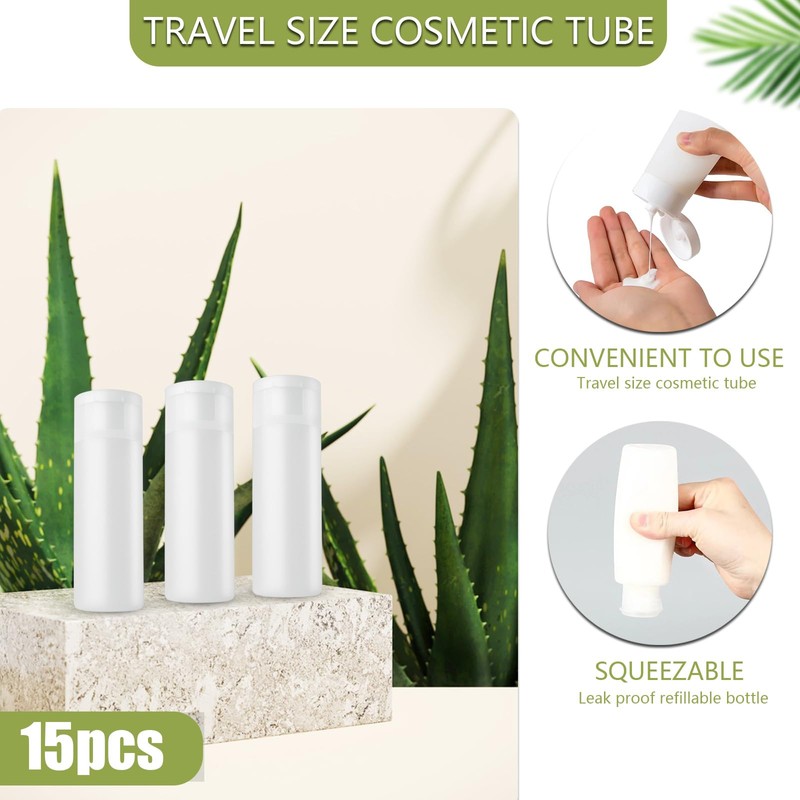 YXC - Juego de 15 botellas de viaje para artículos de cambiador, kit de recipientes de tamaño de viaje, transparente con tapa abatible, a prueba de fugas, recargable, sin BPA, para champú,