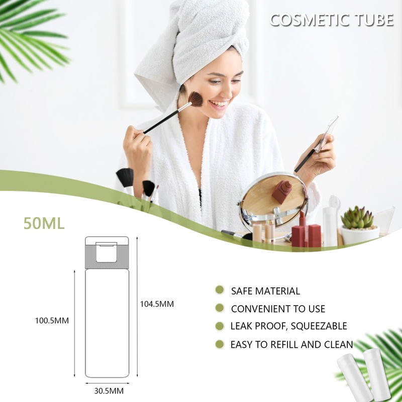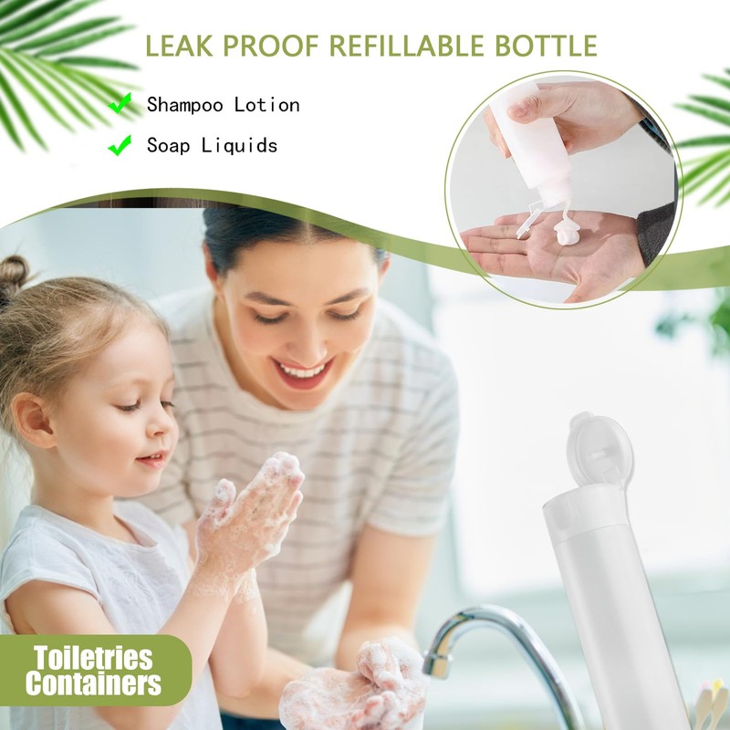 - YXC - Juego de botellas de viaje para artículos de cambiador, paquete de 6 recipientes transparentes con tapa abatible a prueba de fugas, recargables, sin BPA, para champú, acondicionador, loción, lavado facial, crema de dientes