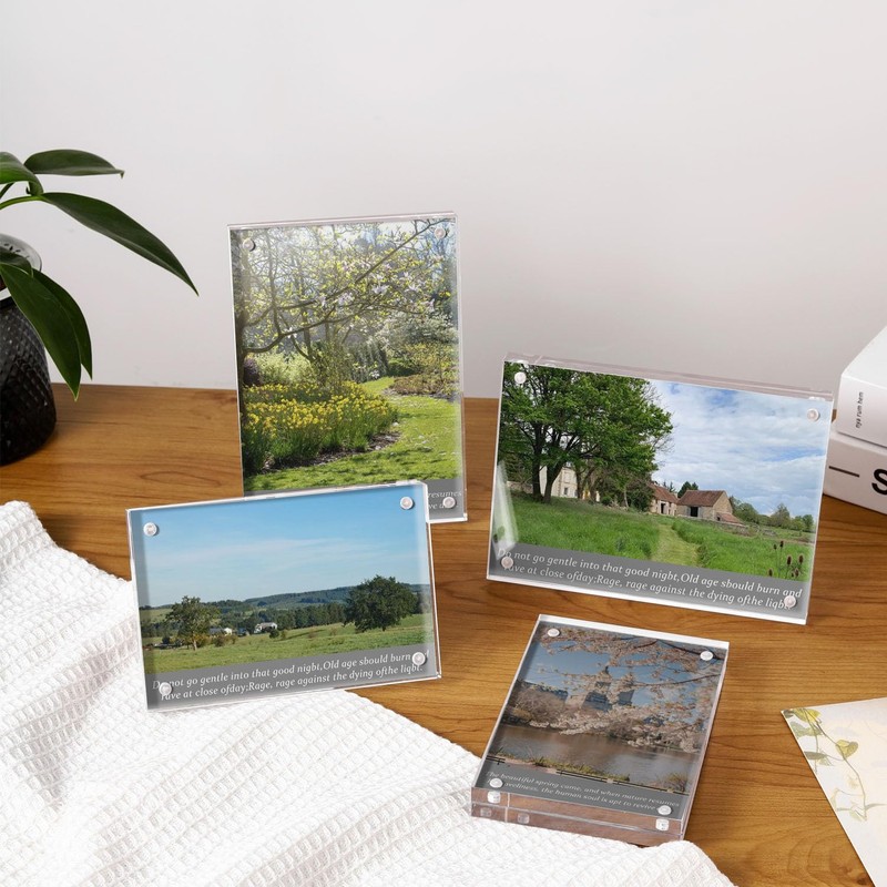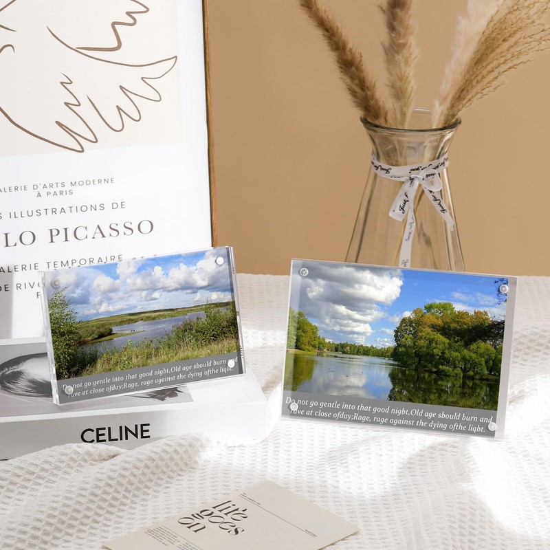 - Premium Acrylic Material & Frameless Design: Crafted from high-quality acrylic, these picture frames offer a sleek, modern, and frameless design that beautifully complements any photo while providing a clear and crisp view without distractions.