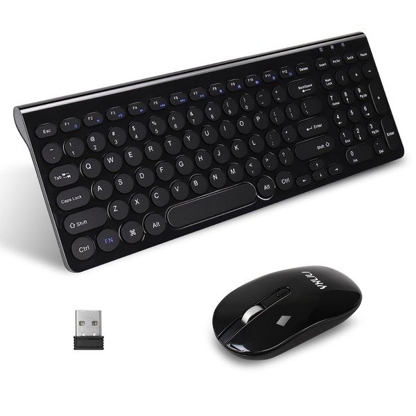 - Reliable Wireless Connection: Connect to a computer with 2.4G wireless technology. The wireless keyboard and mouse combo works from up to 33 feet (10 m) away with one tiny USB receiver, with fast data transmission wireless technology. The wireless plug-and-play keyboard and mouse can be connected to your configuration at any time, making work simple and easy.