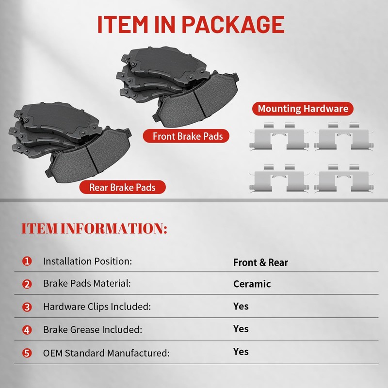 - Outstanding Braking Performance: Our brake pads are engineered to deliver reliable and powerful braking force in all driving conditions, whether it's city traffic or high speed highways. Provide you with enhanced safety on the road.