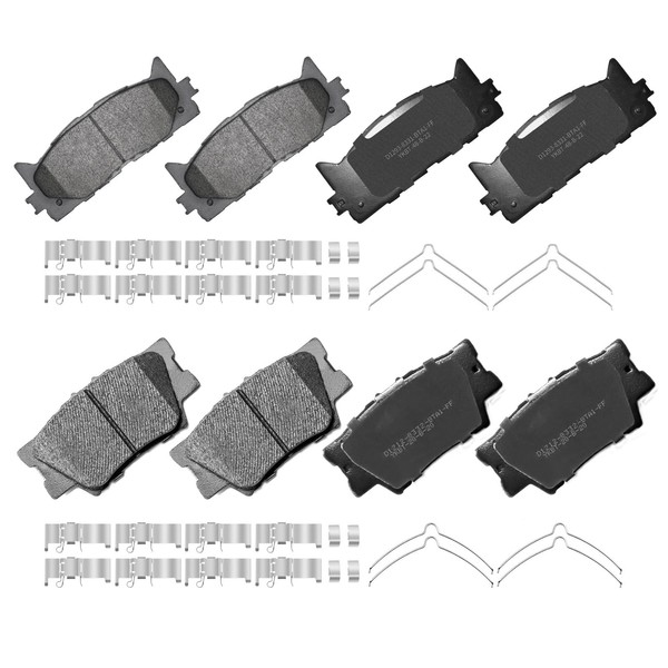 YxpBrake Front Rear Ceramic Brake Pads with Hardware Fit for Toyota Camry 2007-2017, Toyota Avalon 2008 2009 2010 2011 2012 2013 2014 2015 2016 2017 2018, Lexus ES350 2007-2018, ES300h 2013-2018