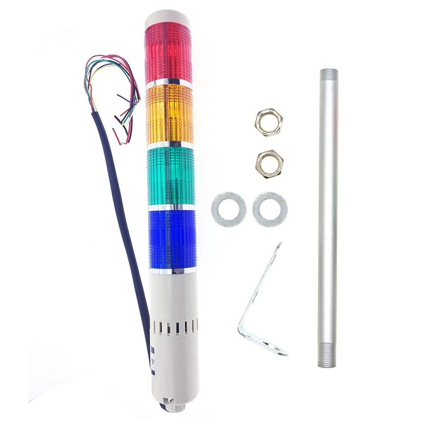 YXQ DC 24V Industrial Signal Warning Light with Buzzer 4 Colors, 5W Blub Flashing Red Green Yellow Blue