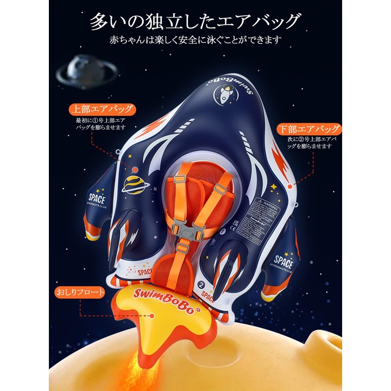 - 【Funny Water Toy】Super cute spacecraft astronaut theme. Kids will love it. Very relaxing. This swim ring supports breast and backstroke, both are upgraded to two more interesting ways of swimming. 3 cute bells will ring every time your baby moves, attract baby's interest