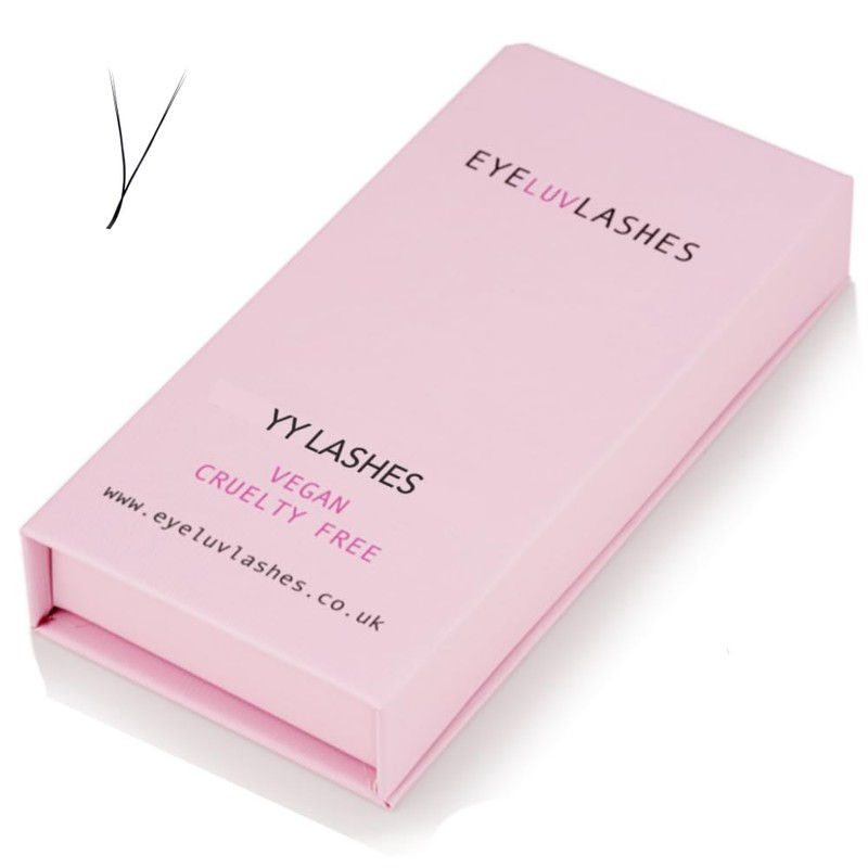 - Each YY fan contains 4 extensions of a 0.05mm (4 lashes adhered together at the base splitting in to a Y shape with 2 lashes on each side of the Y