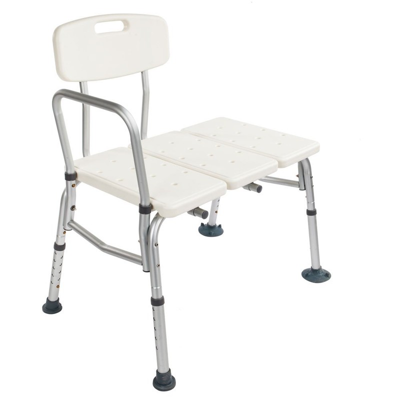 Plastic Tub Transfer Bench with Backrest; the ideal accessory for anyone who has difficulty getting in and out of the tub or shower.This seat features