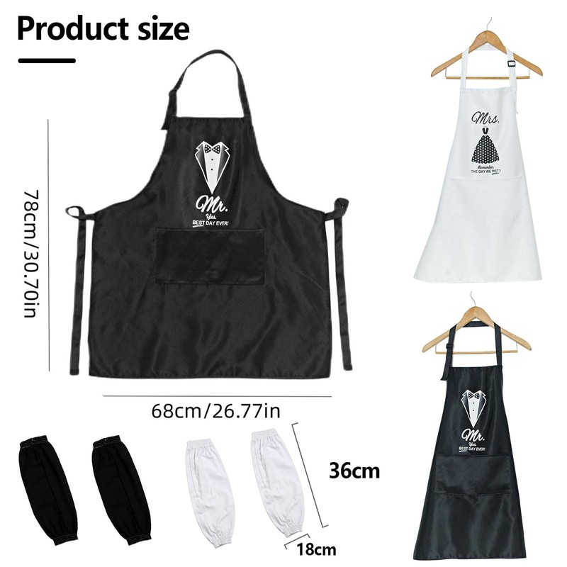 - Easy to Use: The aprons cover from chest to knee, providing great coverage, which with sleeves can protect from kitchen grease, spills and food stains. And this Mr. and Mrs. aprons have ample pockets and adjustable straps, it will fit for everyone