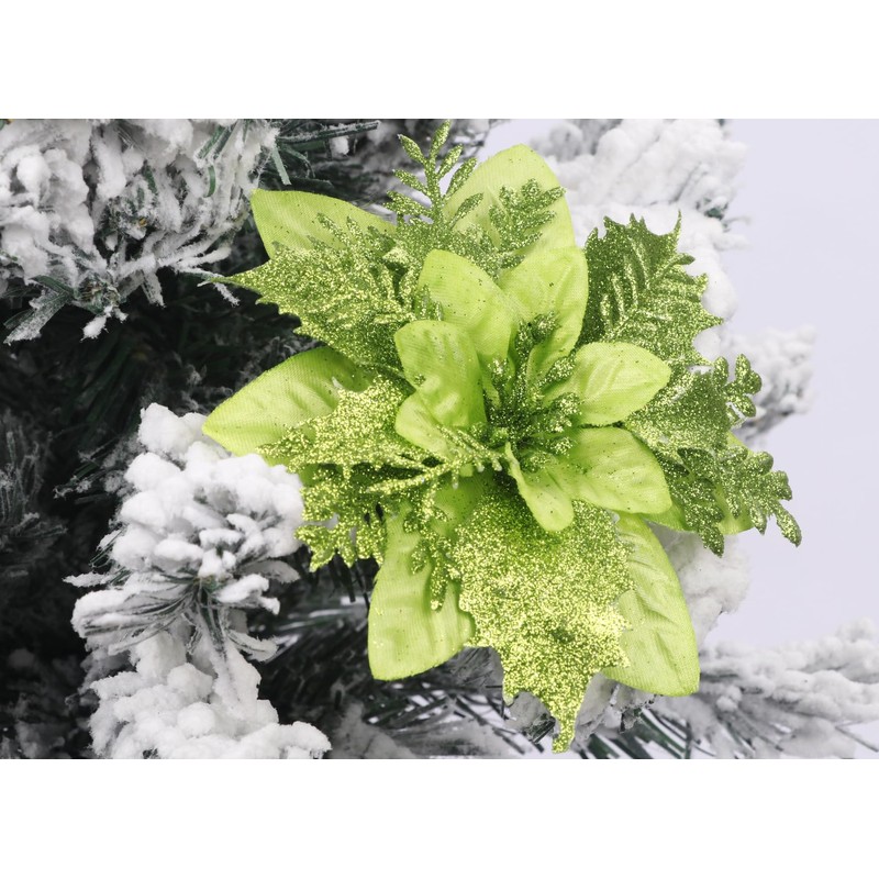 YYCRAFT 12pcs Silk Shinning Sprakled Glitter Poinsettia Artificial Flower for Xmas Tree Christmas Decorations(Lime Green,6 Inch)
