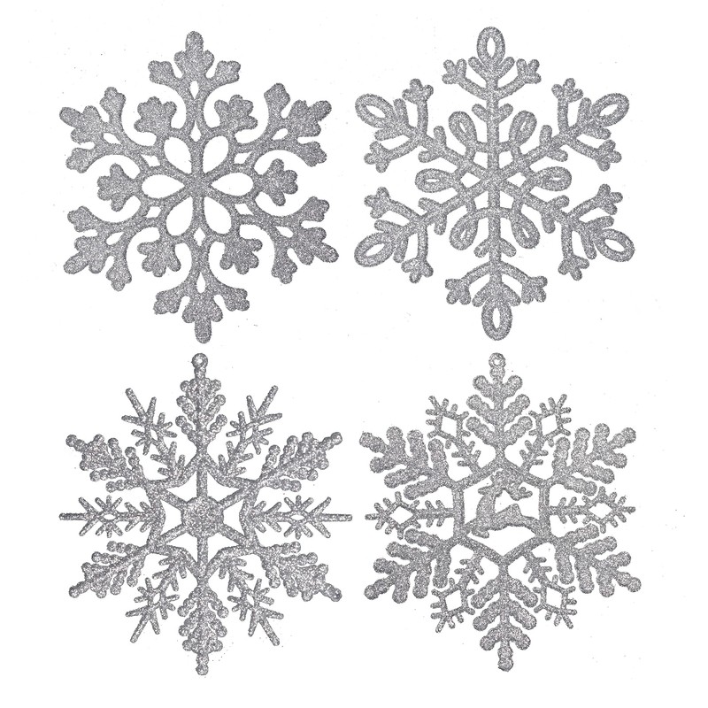 YYCRAFT 32pcs Glitter Snowflake Ornament 4 Inch for Christmas Tree Decoration-Silver