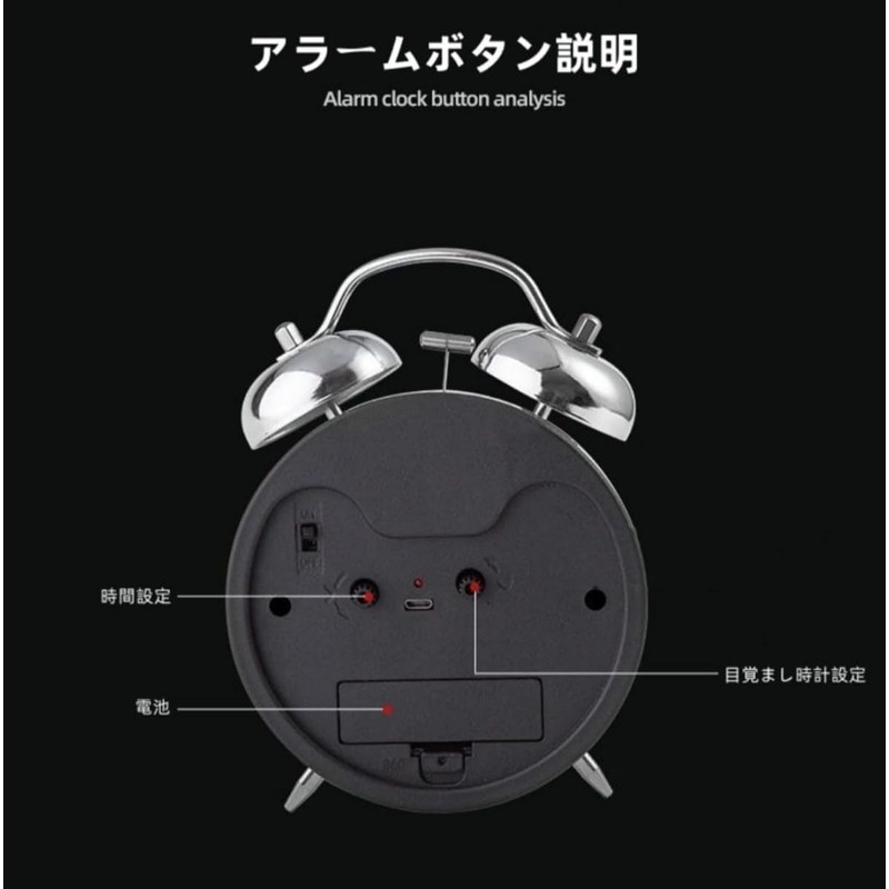 - 【絶対起きれる目覚まし時計 製品説明】この金属輝くのアナログ 大音量 目覚ましどけいは、子供たちに非常に人気があります。このおしゃれなうるさい 爆音目覚まし時計は、連続する針と文字盤で正確な時間を示します。アラーム 時計のベル音は、同じ強さでバランスが保たれ、はっきりと大きな音で、深い眠りや聴覚障害のある方に適しています。この振動 爆音めざまし時計は、不規則な生活リズムを整えるのに役立ちます。