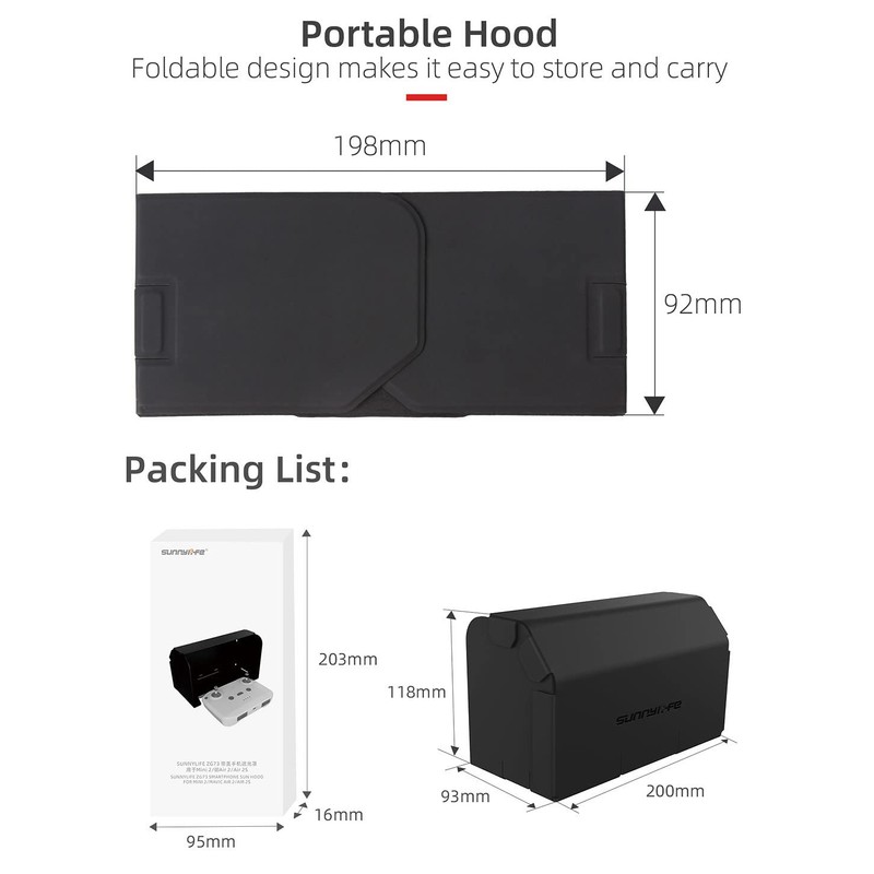 - 【What you get】--1 x Foldable cellphone sunshade hood(drone, cellphone, tablet and controller not including)