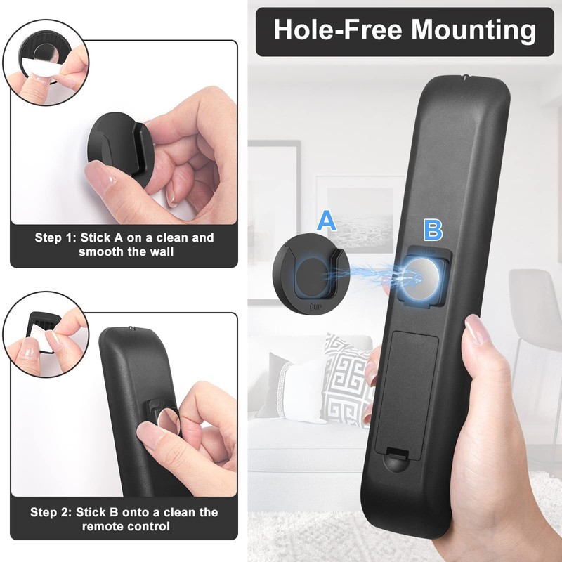 - 【HOLE-FREE & REMOVABLE MOUNTING】No drilling or tools are required! Simply peel off the adhesive backing and attach the tv remote holder to any flat, vertical surface, such as a wall, glass, tiles, the side of the TV or bed, or headboard. Besides, the adhesive removes easily and leaves no marks.