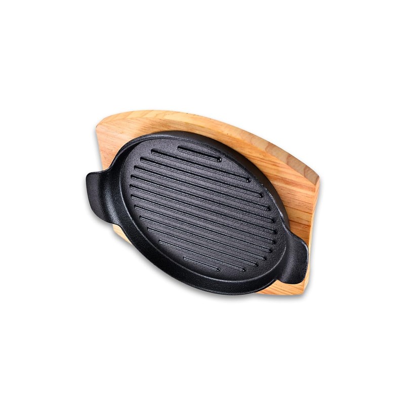 YYJINGYOU Skillet with Cast Iron Steak Plate Set with wood (Striated circle, 8 inches)