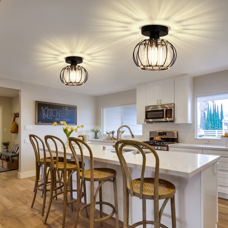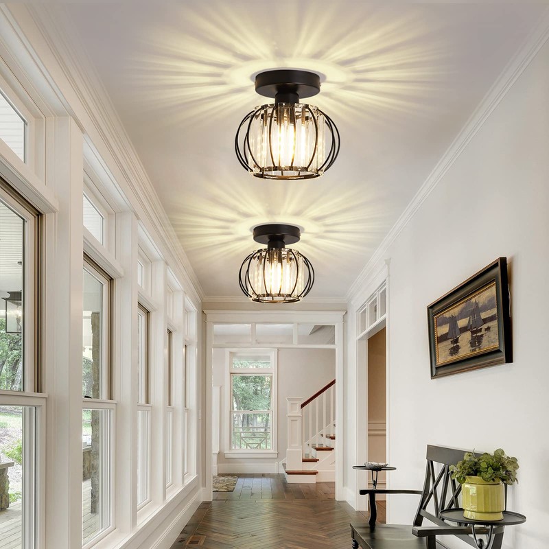 YYJLX 2 Pack Semi Flush Mount Ceiling Light Fixture Modern Small Crystal Chandelier Mini Indoor Ceiling Lamp for Bathroom Hallway Foyer Porch Hall Closet(Black)