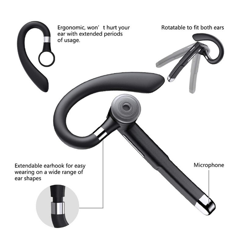 YYK-520 Auriculares Comerciales Inalámbricos, Auriculares Bluetooth Inalámbricos Multifuncionales V5.0, Auriculares Manos Libres con Compartimento de Carga Portátil para Conducir/Negocios/Oficina