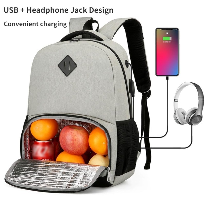 YYKSYDPT Lunch Backpack Laptop Backpack With Usb Port Work Backpack With Cooler Bag Insulated Laptop Bag (Black)