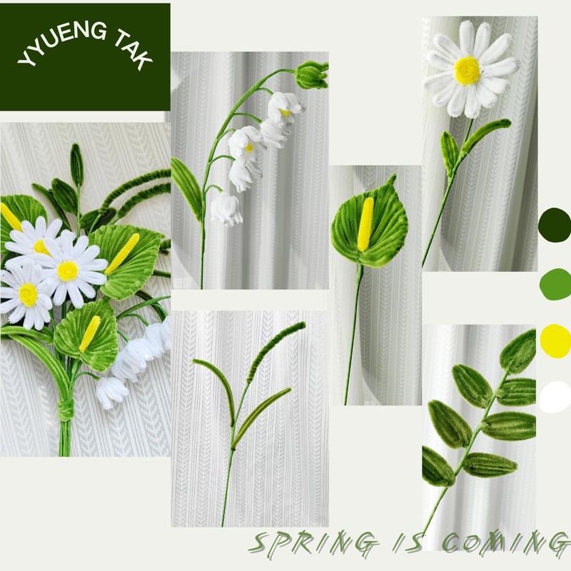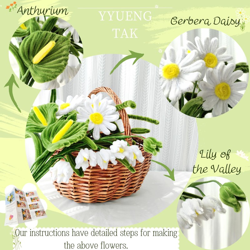 - ☘ Individually Curated Material Combination ☘ Thoughtfully selected 60 dark green pipe cleaners + 60 light green pipe cleaners + 60 white pipe cleaners + 20 yellow pipe cleaners for natural floral aesthetics. Includes 15 pcs Green Floral Wires, Gardening Tape, and hot melt glue stick for stable flower arrangements.