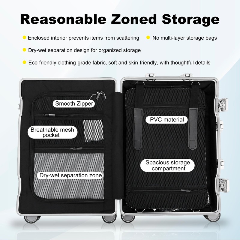 - 【Dual TSA-Approved Combination Locks】Secure your valuables with two TSA-accepted locks – customs officials can inspect without damage using master keys, while you set personalized codes. Zinc alloy lock bodies resist prying and corrosion.