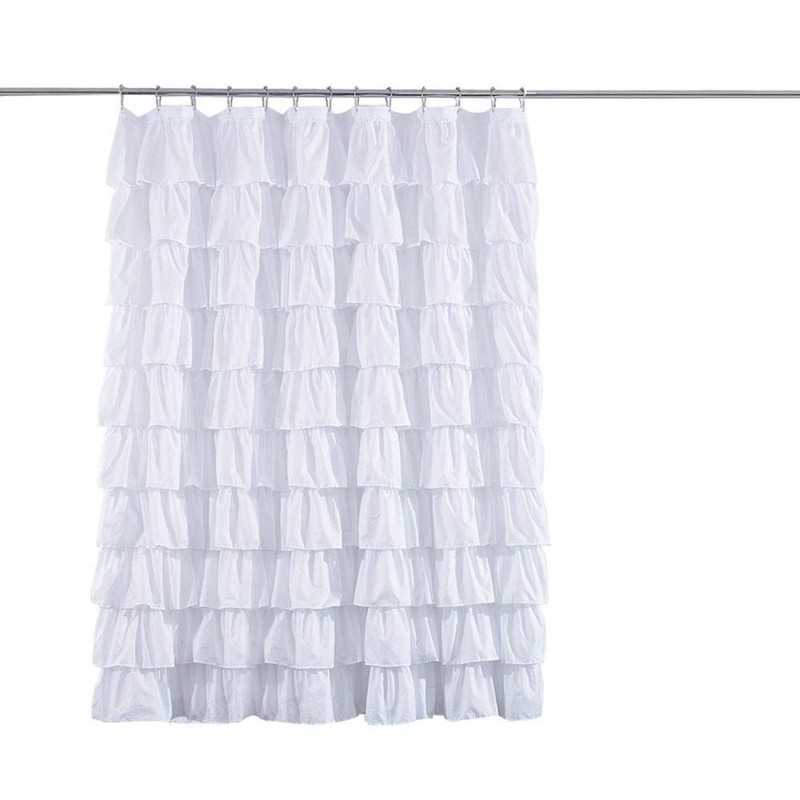 Fabric ruffled white shower curtain: impart an air of elegance & sweet into a bathroom, bedroom and living room etc.