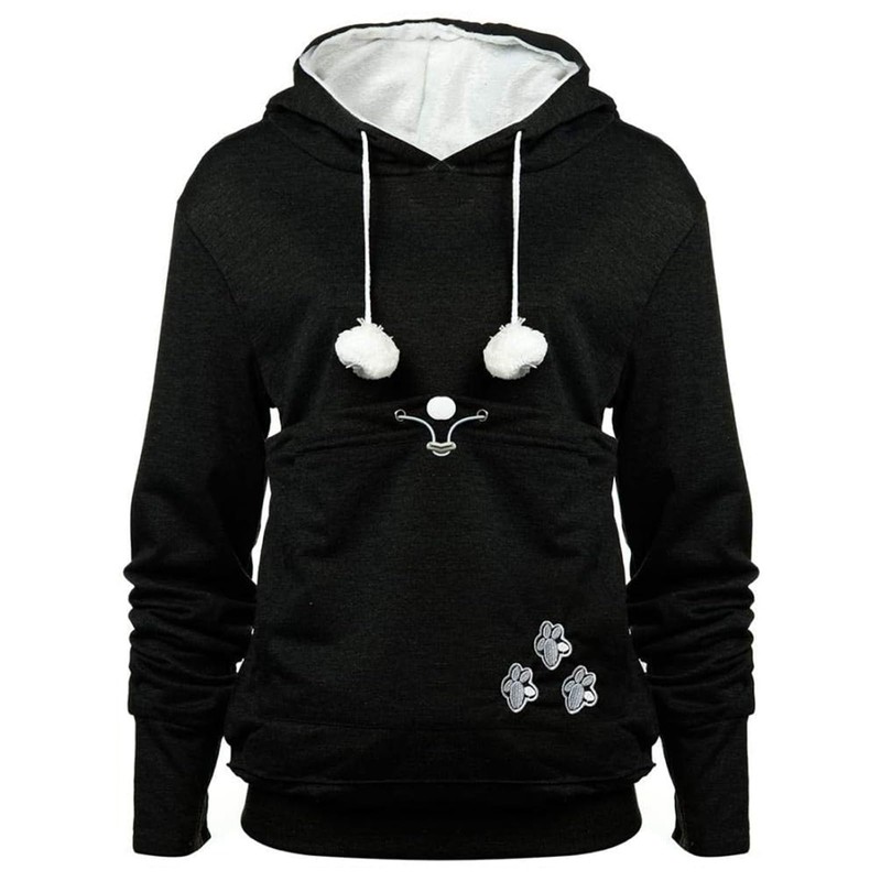 YYW Womens Pet Hoodies Pullover Sweatshirt Oversized Cat Hoodies Pet Holder Cat Dog Pouch Carriers (Black,Large)