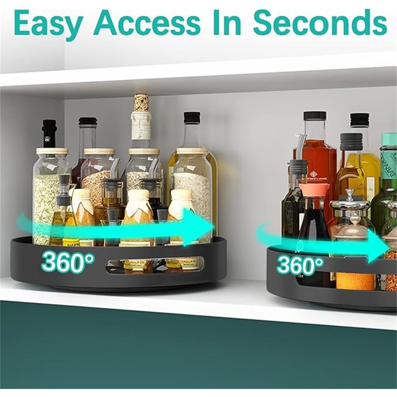 • Versatile Uses: Lazy susan cabinet organizer can also be used in the bathroom, bedroom, office, or anywhere that you need additional organization. They are revolving storage space maximizes cabinet space and keeps the kitchen organized and tidy.