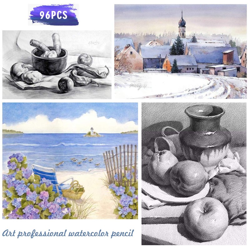 - 1. Bigger, Better, Complete - This professional art pencil set comes with 96 pieces, including pencil case, 72 watercolor pencils, 12 sketch pencils, 3 carbon pencils, 1 eraser, 1 sharpener, 1 pencil extender, 1 sandpaper, 1 hook line Pen and 3 paper stumps.
