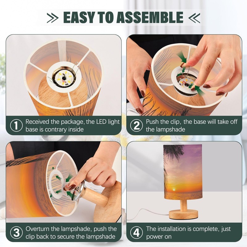 - Feature: the table lamp includes a lampshade, no need to install a light bulb, the LED light is integrated with the stable wooden base, a short-end button switch, which is convenient for you to turn on or turn off the lights, USB interface, plug and use the desk lamp; Non-flashing warm lights protect your children and family's eyes;