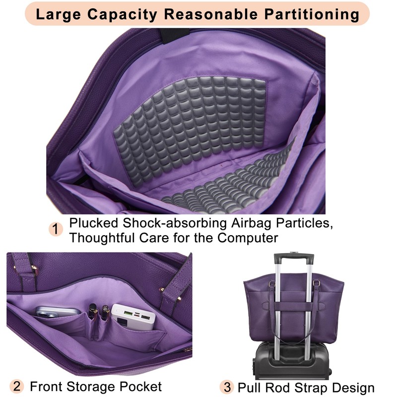 YZAOLL 15.6 Inch Laptop Tote Bag for Women,Water-resistant Vegan Leather with Anti-Scratch Padded Sleeve,Lightweight Multi-Pocket Work Bag for Business Travel,College,Office Essentials,Purple