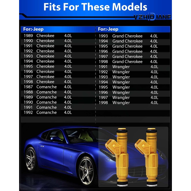 - ⭐⭐⭐⭐⭐【Application】0280155710 0280155700 M02710X6 0280155703 Fuel Injectors 4 Holes Fits For 1989-1998 For:-JEEP Cherokee 4.0L, 1993-1998 For:-JEEP Grand Cherokee 4.0L, 1991-1998 For:-JEEP Wrangler 4.0L, 1987-1992 For:-JEEP Comanche 4.0L