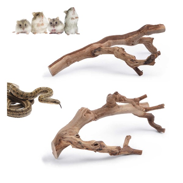 YZHZOM 2pcs Natural Reptile Wood Branches Snake Climbing Branch Branches for Hamster Rabbit Chameleon Bearded Dragon Gecko Snake Frog Spider