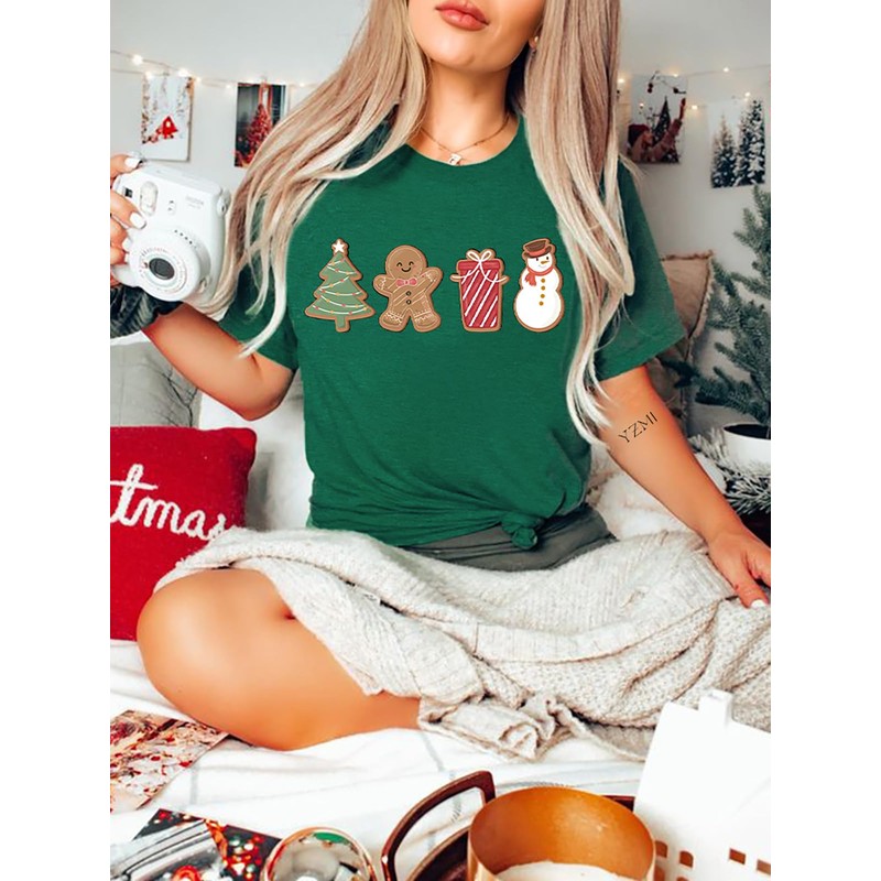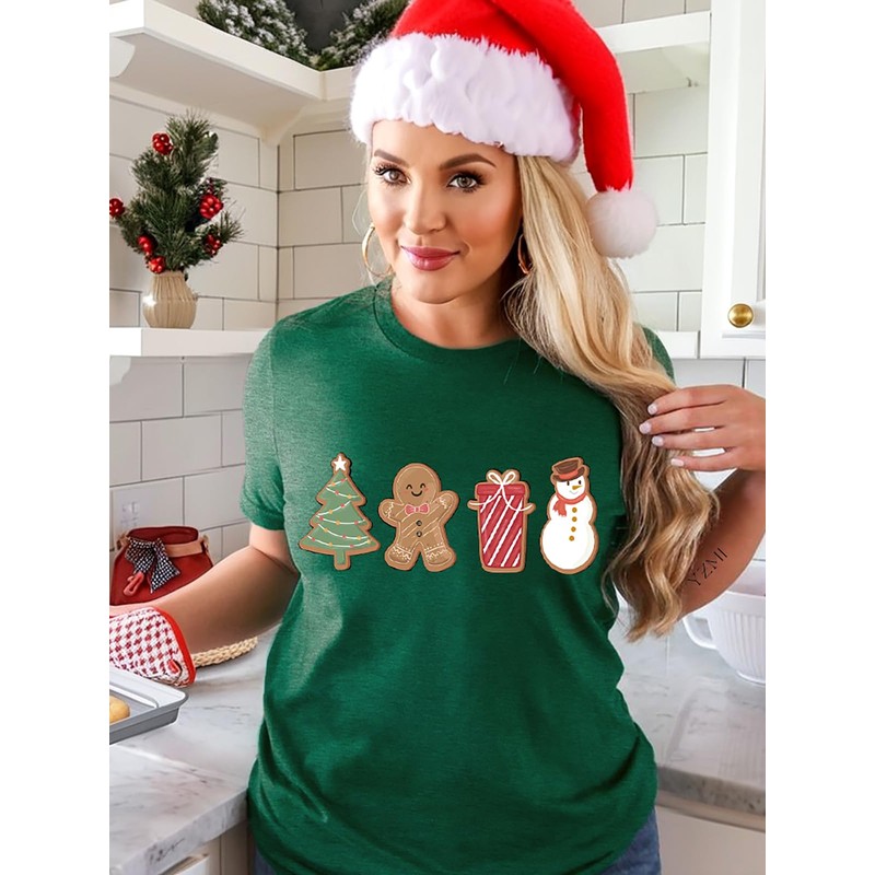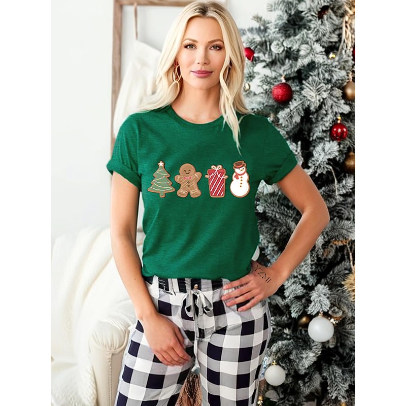 YZMI Womens Cute Gingerbread Cookies Christmas Shirt Holiday Snowman Gift Tee Vacation Casual Shirts Green M