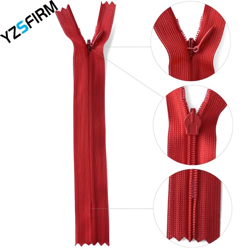 YZSFIRM 10個 30cm(12インチ)純絹 目立たないソーイングファスナー バルク、レッド 洋裁手芸用コイルファスナー