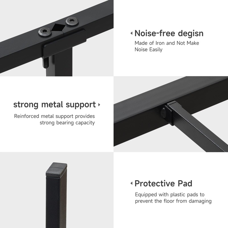 - Noiseless Design: This metal bed frame is made of exquisite craftsmanship to achieve a noiseless design. Its tight structure and specially treated joints ensure that no harsh sounds will be made when turning over or getting up, creating a quiet and comfortable sleeping environment for you. Whether it is late at night or early in the morning, you can enjoy a worry-free sleep time