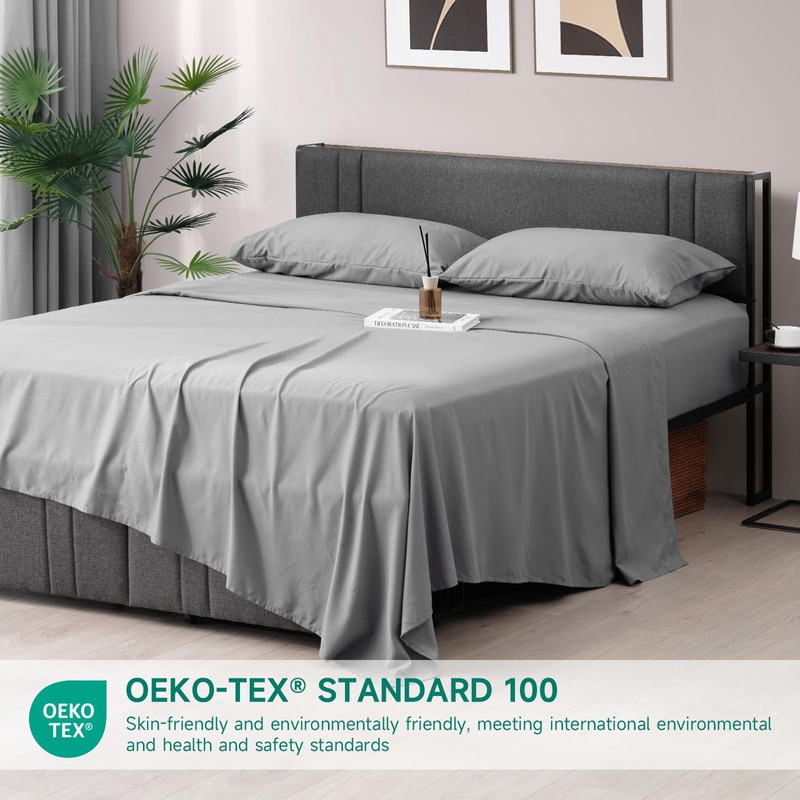 - [Certified & Skin Friendly] The bed sheets are crafted from 100% extra polyester and are OEKO-TEX STANDARD 100 certified, guaranteeing that Z-Hom bed sheets are free of harmful chemicals and are gentle on the skin. Our fitted bed sheets are made with a blend of microfiber and elastic all around, providing them with superior strength and elasticity