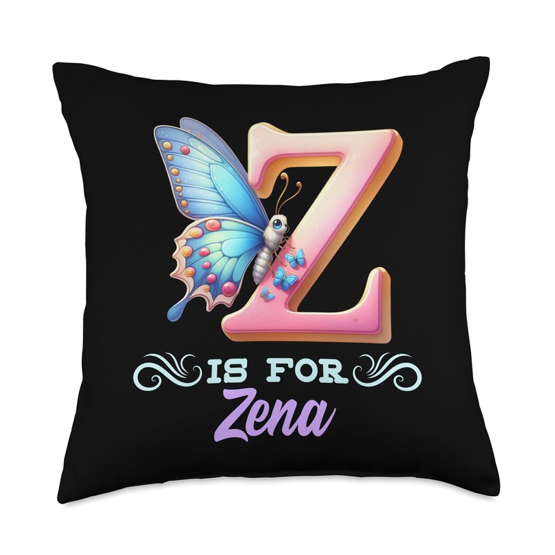 Z Is For Zena Girly Butterfly And Flower Initial Name Throw Pillow