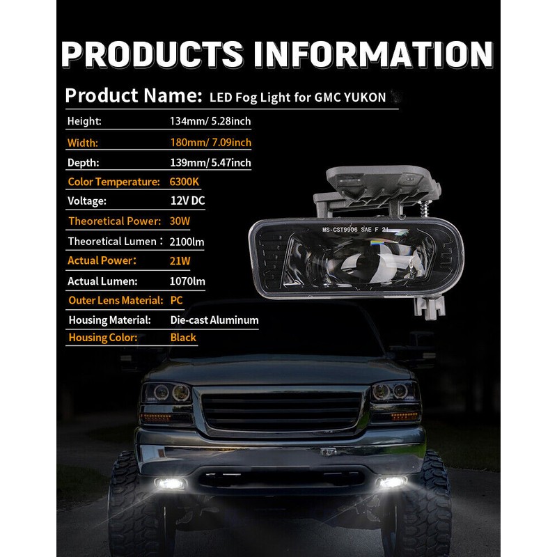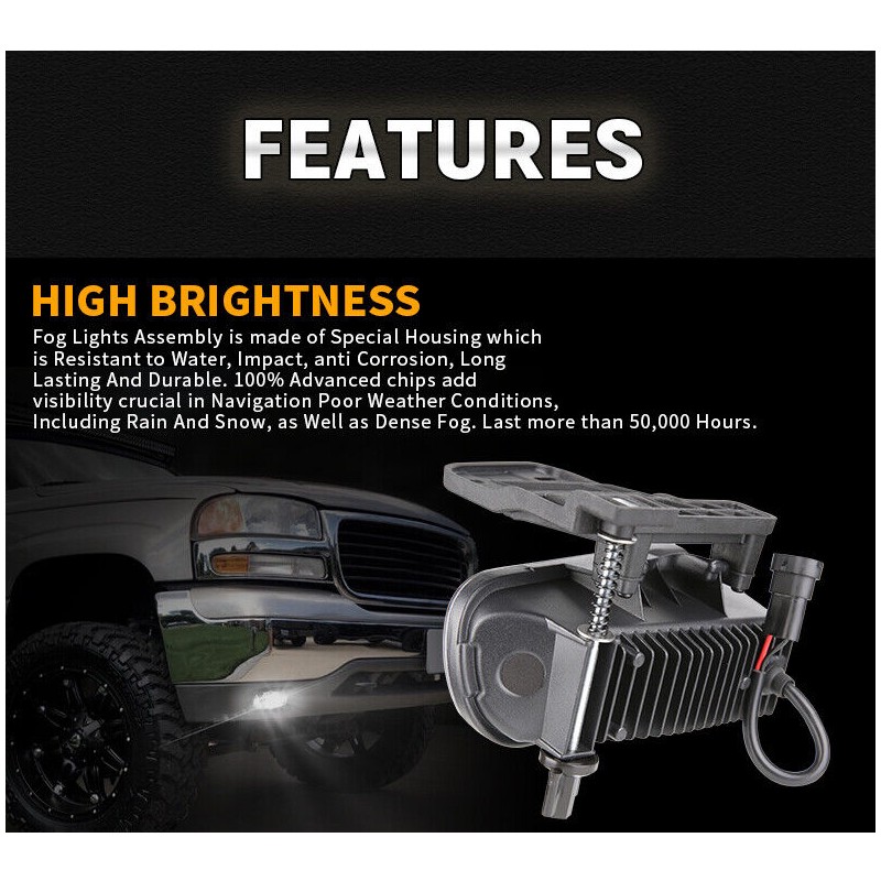 *Classic LED Projector Design: Innovative LED fog lights utilize single projector optic technology while perfectly match the classic look with factory trucks. Our fog lamps project even lighting on the road with a more focused beam pattern that is evenly-distributed and tightly-organized.