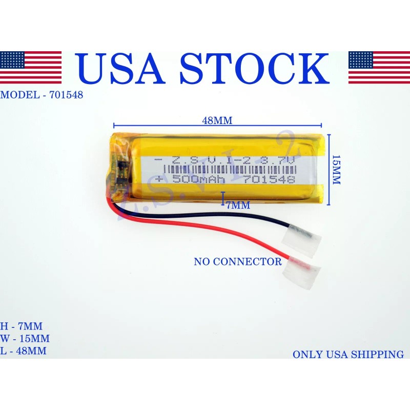 Z.S.V.I -2 3.7V 500mAh 701548 Lithium Polymer LiPo Rechargeable Battery (USA STOCK)