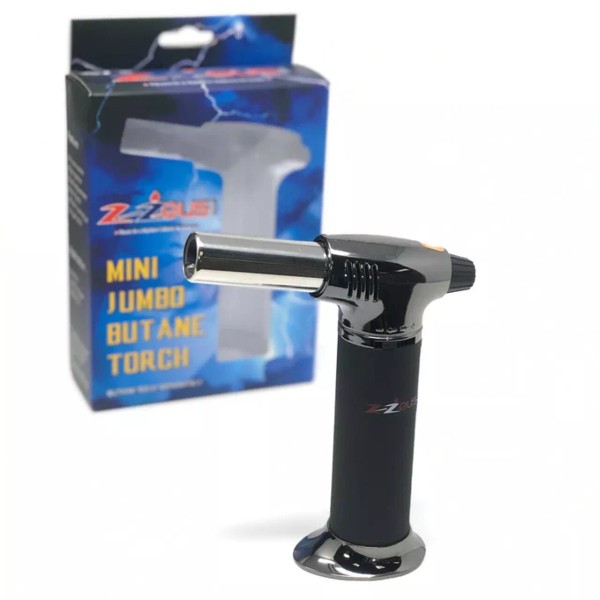 Z-ZEUS ZERO MINI JUMBO TORCH 6" REFILLABLE, 5 COLORS, (WITHOUT BUTANE) - Black