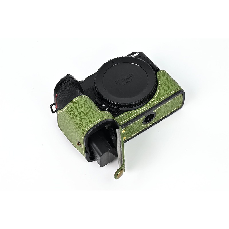 Z30 Case, BMAOLLONGB Handmade PU Carbon Fibre Leather Half Camera Case Bag Cover Bottom Opening Version for Nikon Z30 with Hand Strap (Green)