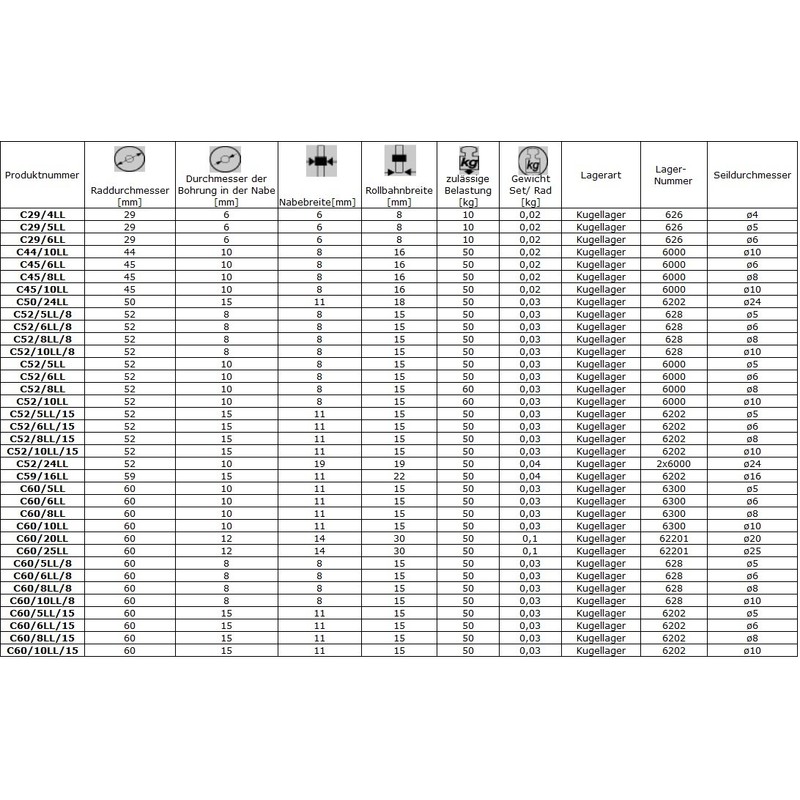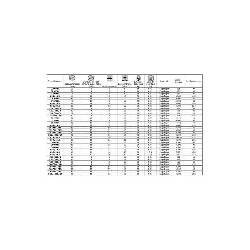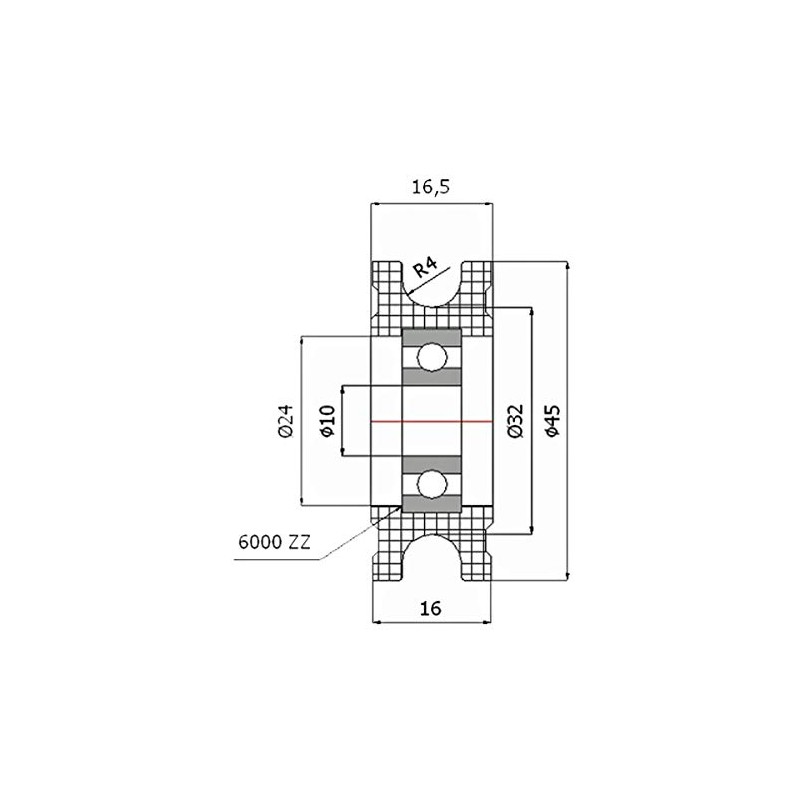 ZAB-S C45/8LL Profile Plastic Roller with Ball Bearing for Rope Polyamide Diameter 29 - Diameter 60 Wheels (C45/8LL)