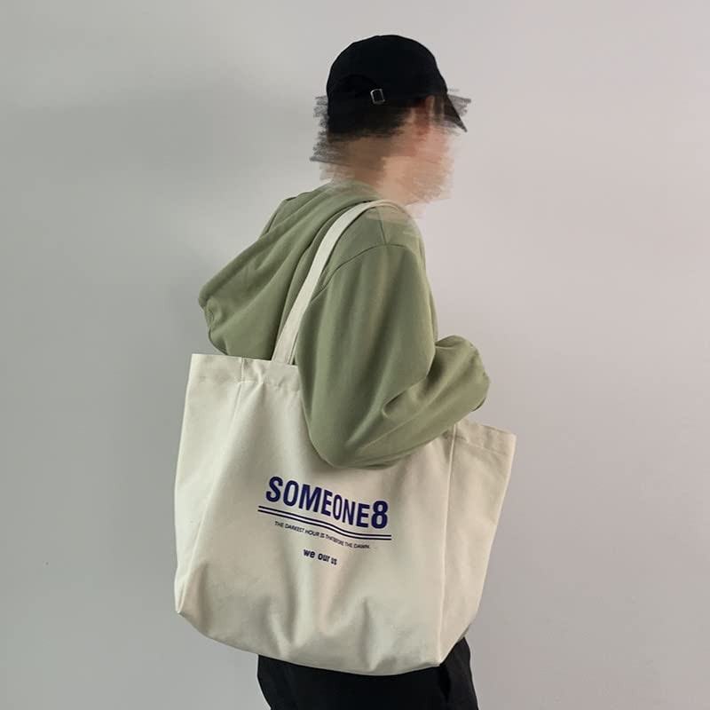 Zabonchi Cute Canvas Bag, Tote Bag, Large Capacity, Shoulder Bag, For School or School Going Out Bag, Zipper/Button, Someone, 33 x 32 cm