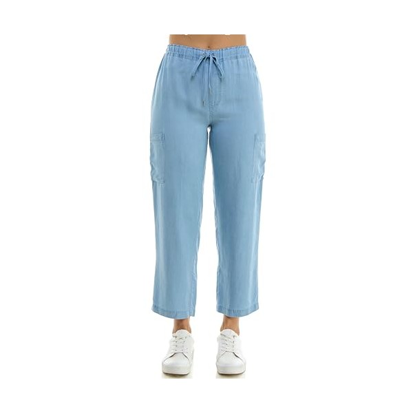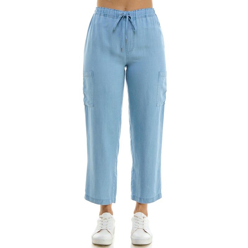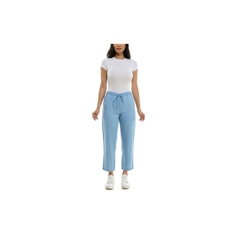 Zac & Rachel Women's Tencel Ankle Length Pant with Elastic Wasitband, Self Adjustible Belt and Functional Side Cargo Pockets, Light Wash