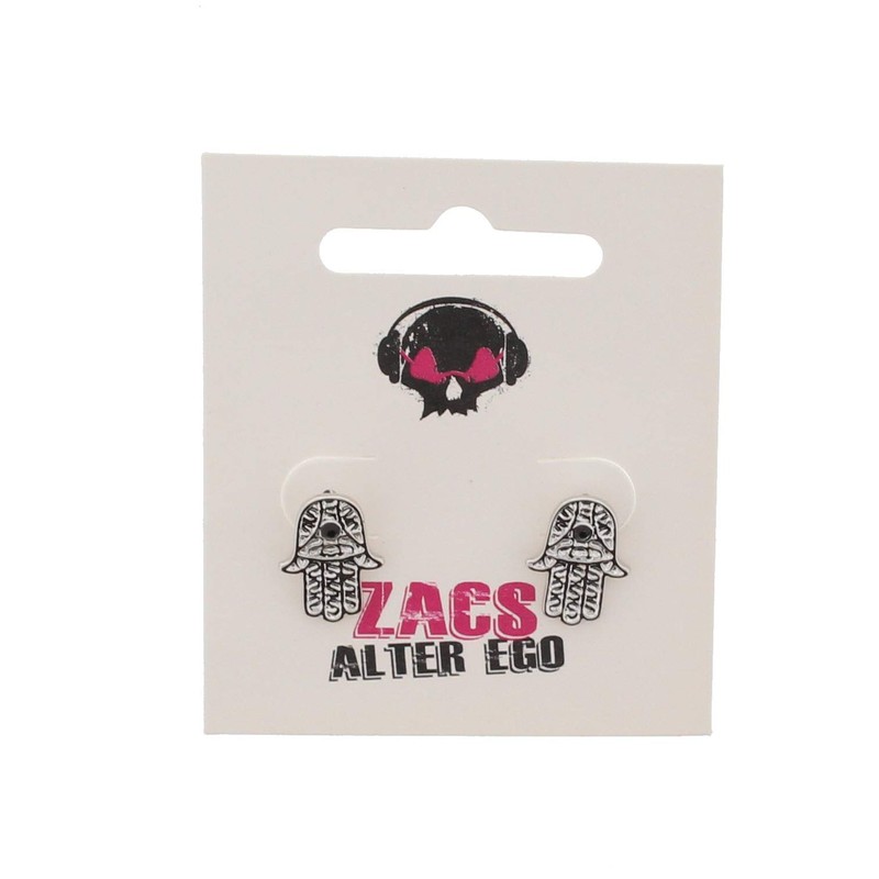 Zac's Alter Ego Alternative Jewellery Silver Hamsa Stud Earrings with Black Stones