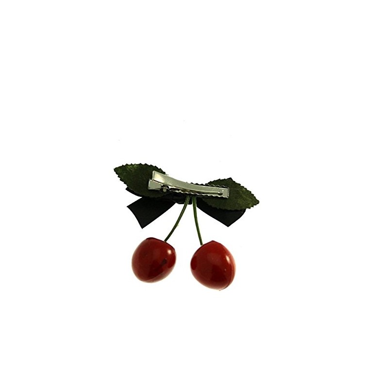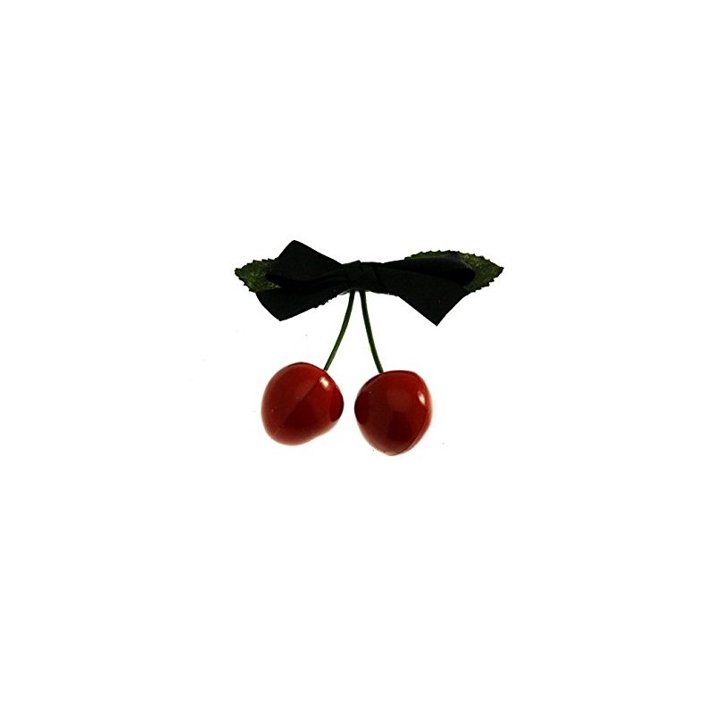 Zac's Alter Ego Cherries Hanging off Black Bow on Concord Clip